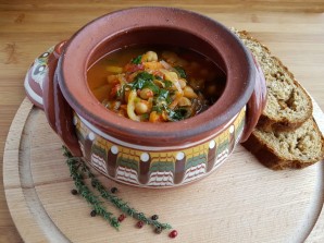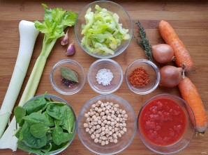 Идеально для обеда. Горох нут богат белком, но считается тяжелым для пищеварения, поэтому длительное замачивание просто необходимо. Если у вас есть возможность, то за время замачивания воду лучше несколько раз слить. После того, как нут будет сварен, приготовление похлебки не займет много времени. Незадолго до готовности нута сварите овощной бульон, затем пассеруйте все овощи, добавьте бульон, нут, шпинат. Похлебке нужно дать немного времени настояться. 10 минут и вкусная Испания у вас в тарелке Подавайте суп горячим.