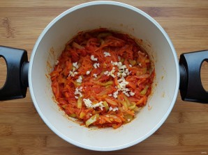 В последнюю очередь добавляем измельченный чеснок, готовим не больше одной минуты.