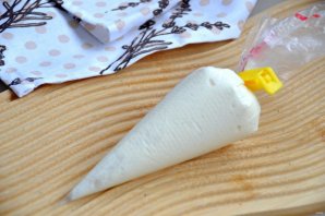 Переложите тесто в кондитерский мешок, уберите в холодильник на 30 минут.