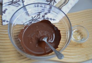 Короткими импульсами в несколько приемов растопите шоколад в микроволновой печи, смешайте, добавьте 1 ч.л. растительного масла.