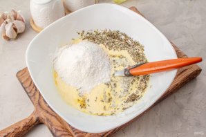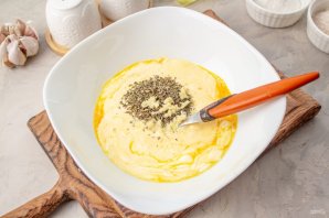 К полученной смеси добавьте соль, черный молотый перец и сушеный базилик.