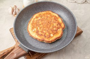 Аккуратно переверните лопаткой и жарьте еще пару минут под крышкой.