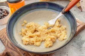 Банан очистите от кожуры, выложите в миску и разомните вилкой.