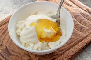Сливочный сыр соедините с йогуртом и медом.