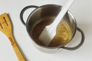 Соедините яйцо, мед, сахар, сливочное масло и специи. Поставьте емкость на водяную баню и постоянно помешивая, доведите смесь до кипения. В самом конце добавьте соду.