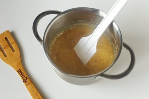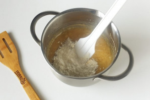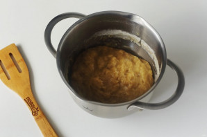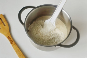 Затем, не снимая емкость с плиты, добавьте стакан муки.