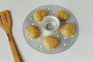 Сформируйте из теста небольшие шарики и переложите на смазанную маслом решетку мантоварки. Готовьте на пару около 25 минут.