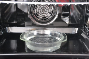 В низ духовки поставьте емкость с водой, разогрейте духовку.