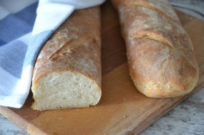 Удержаться очень трудно, чтобы не отломить кусок хрустящего багета, но честно выдержим необходимое время и наслаждаемся вкусным французским хлебом!