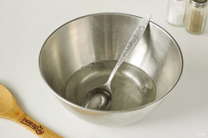 В глубокой миске соедините оставшуюся воду, растительное масло и соль.