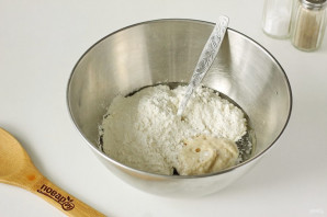 Растворите дрожжи в 2 ст.л. теплой воды. Добавьте сахар и 2 ст.л. муки. Перемешайте и оставьте на 20 минут.
