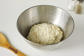 Замесите тесто. Тесто должно быть достаточно липкое, не стоит забивать его мукой. Накройте миску полотенцем и оставьте в теплом месте на 1 час.