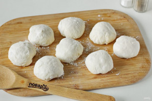 Готовое тесто разделите на 8-10 частей, обваляйте в муке и сформируйте колобки.