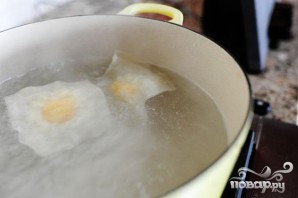 7. После того, как все равиоли будут готовы, бросить их по 4 штуки за раз в кипящую воду. Готовить в течение 3 минут.