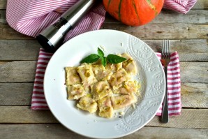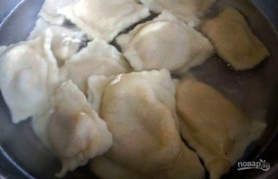 В подсоленный кипяток опустите равиоли и отварите. Равиоли будут готовы через пару минут после всплытия.