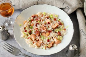 Подготовьте все необходимые ингредиенты для приготовления ризотто с осьминогом.