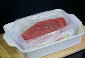 Блюдо готовится без лишних сложностей. Ростбиф с луком очень хорошо перед запеканием помариновать примерно пять часов или больше. А затем уже залить водой или бульоном и запекать в духовке. В принципе по этому же рецепту я всегда делала буженину, только нашпиговывала ее чесноком и запекала в гусятнице. Приготовить ростбиф с луком несложно. Главное поставить ростбиф с луком в духовку и сидеть ждать, когда будет когда будет готово вкусное блюдо. Успехов и Готовое блюдо можно подавать к столу.