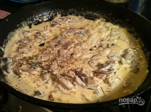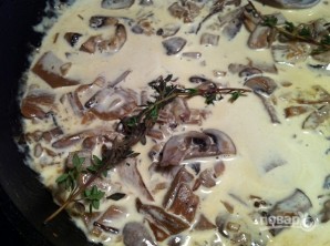 3. Влейте сливки и добавьте розмарин. Впрочем, вы можете использовать любые ароматные специи, которые вам по душе. Уменьшите огонь до минимального.