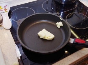 1. Этот соус готовится прямо на сковороде. Сразу нам нужно растопить сливочное масло на сковороде. Не делайте сильный огонь, чтобы масло не сгорело.