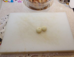 2. Когда масло растопится, добавляем измельченный чеснок и жарим около минуты при постоянном помешивании.