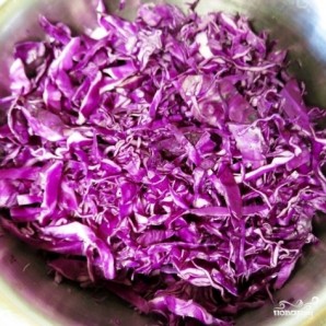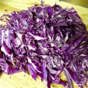 Затем тонко шинкуем красную капусту.