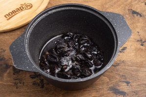 Чернослив помойте в теплой воде, при необходимости удалите косточки и переложите в кастрюлю с толстым дном.
