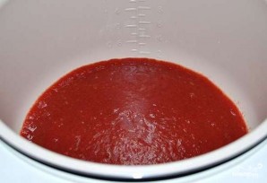 Сливы влейте в ёмкость мультиварки. Включите режим "Cуп", доведите сливовую массу до кипения, а потом варите её ещё 5 минут, всыпав соль, смесь перцев и сахар. Далее добавьте петрушку с чесноком и готовьте ещё 10 минут.