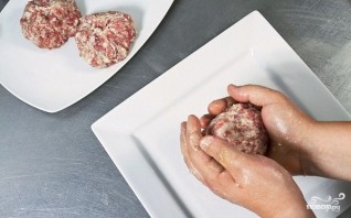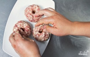 3. В кастрюлю с уже процеженным бульоном отправьте очищенный картофель (можно даже целиком). Из фарша сформируйте большие тефтели, в центр которых поместите сливы.