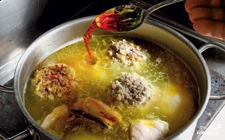 4. Сформируйте аккуратные шарики и отправьте в кастрюлю. Варите 15-20 минут на медленном огне. Параллельно залейте водой шафран, чтобы потом добавить его в бульон.