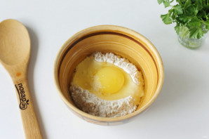Добавьте яйцо и соль по вкусу, чтобы клецки не получились пресные.