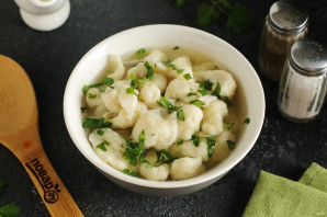 Разложите клецки по тарелкам и подавайте к столу. Бульон можно подать как вместе, так и отдельно.