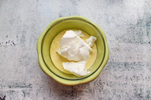 Разделите яйца на белки и желтки. Желтки выложите в глубокую миску, добавьте сахарную пудру и взбейте до пышной массы. Добавьте к желткам маскарпоне и еще раз взбейте до пышности.
