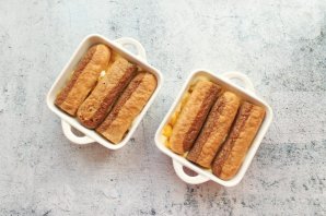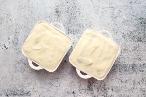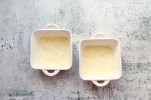 В одну форму или несколько поменьше как у меня выложите немного крема и распределите по всей поверхности.