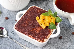 Блюдо готовится без лишних сложностей. Манго придает тирамису пикантную нотку и сочность. Выбирайте плод хорошо поспевший и сладкий. Кофе лучше всего сварить натуральный, а не растворимый. Если нельзя алкоголь, добавьте в кофе ваниль Готовый десерт можно подавать к столу.