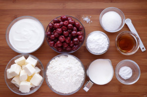 Домашняя выпечка к чаю. Торт "Шапка Гугуцэ" назван так, потому что в разрезе напоминает шапку пастухов, которую носил маленький мальчик по имени Гугуцэ, герой сказок молдавского писателя Спиридона Вангели. Торт получается очень большим и вкусным. Для начинки используется вишня из компота, а коржи-трубочки промазываются сливками, взбитыми с сахаром. Подробнее, Подавайте остывшим или слегка тёплым.
