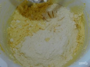 Добавьте соду, ванилин и муку. Перемешайте и дайте постоять минут 15, чтобы масса стала более плотной.