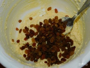 добавьте распаренный изюм. Перемешайте.