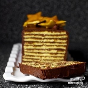 Готовый торт ставим в холодильник хотя бы на полчасика, а лучше - на пару часов.
