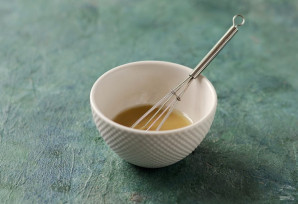 Для заправки смешайте горчицу, яблочный уксус и оливковое масло до однородной консистенции.