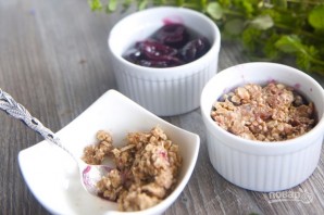 3. В форму для выпекания выложите слоями вишню и сверху смесь из овсяных хлопьев.