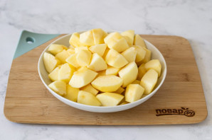 Яблоки помойте, очистите от кожуры. Удалите сердцевину, нарежьте на кубики.