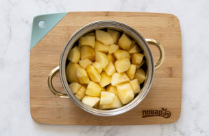 Переложите яблоки в кастрюлю с толстым дном. Влейте воду и тушите 15-20 минут до мягкости.