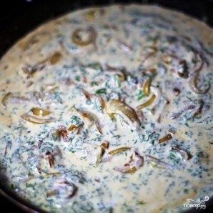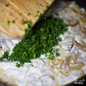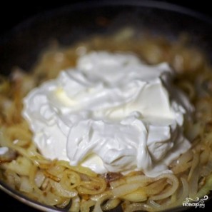 Добавляем сметану, перемешиваем и доводим до кипения на медленном огне.