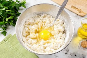 Добавьте яйцо и растительное масло.