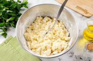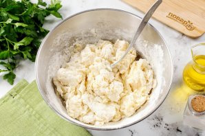 Затем начинайте частями подсыпать оставшуюся муку.