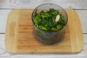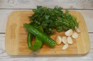 3. Зелень помойте, чеснок почистите, у перца удалите плодоножки и, по желанию, семена.