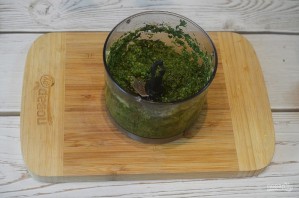 Идеально подходит к мясу, птице и гарнирам. Зелень в этой аджике может быть любая, не обязательно кинза: отлично подойдет петрушка или базилик. А если добавить при приготовлении тертый пармезан, то получится соус песто Подавайте охлаждённым или комнатной температуры.